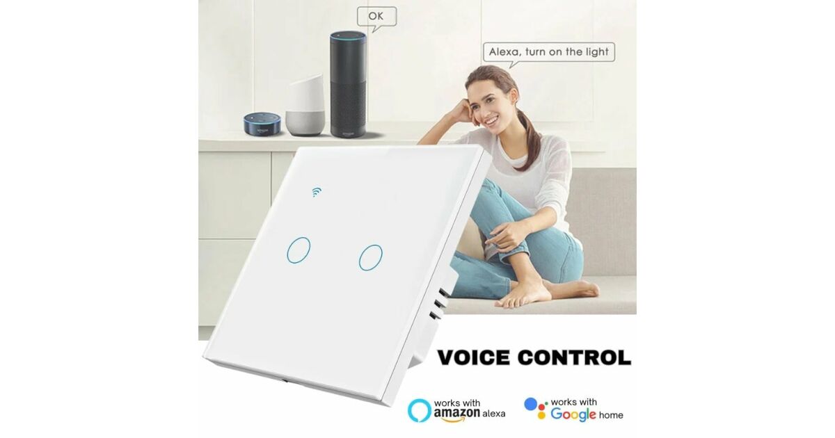 Dieser doppelte iUni 2G Smart-Touch-Schalter revolutioniert deine Wohnraumbeleuchtung! Genieße Komfort und die Vorteile moderner Technologie mit einem eleganten Schalter aus Sicherheitsglas.