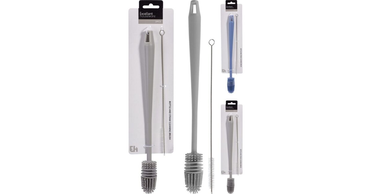 Excellent Houseware 2er Set Flaschen- und Strohhalmbürsten, Kunststoff/Edelstahl, 34/26 cm, blau Beschreibung