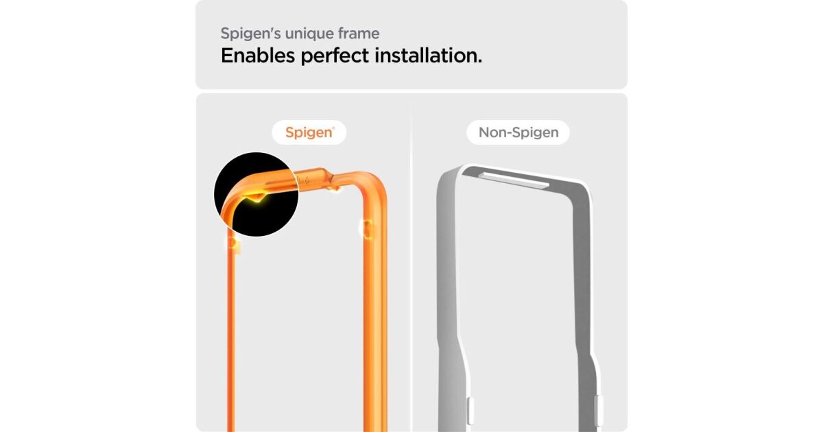-Spigen ALM FC Displayschutz-Set aus gehärtetem Glas für iPhone 15 PLUS, 2 Stück, mit schwarzem Rahmen Beschreibung