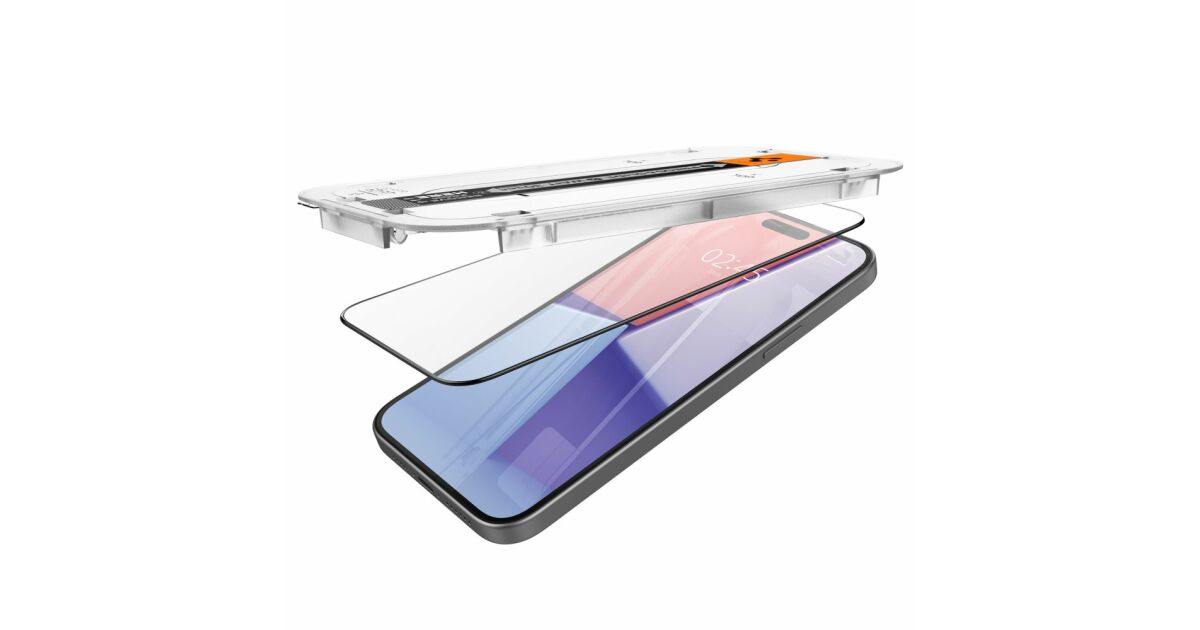 Spigen GLAS.TR „EZ FIT“ FC Displayschutzfolie aus gehärtetem Glas für iPhone 15 PLUS, mit schwarzem Rahmen Beschreibung