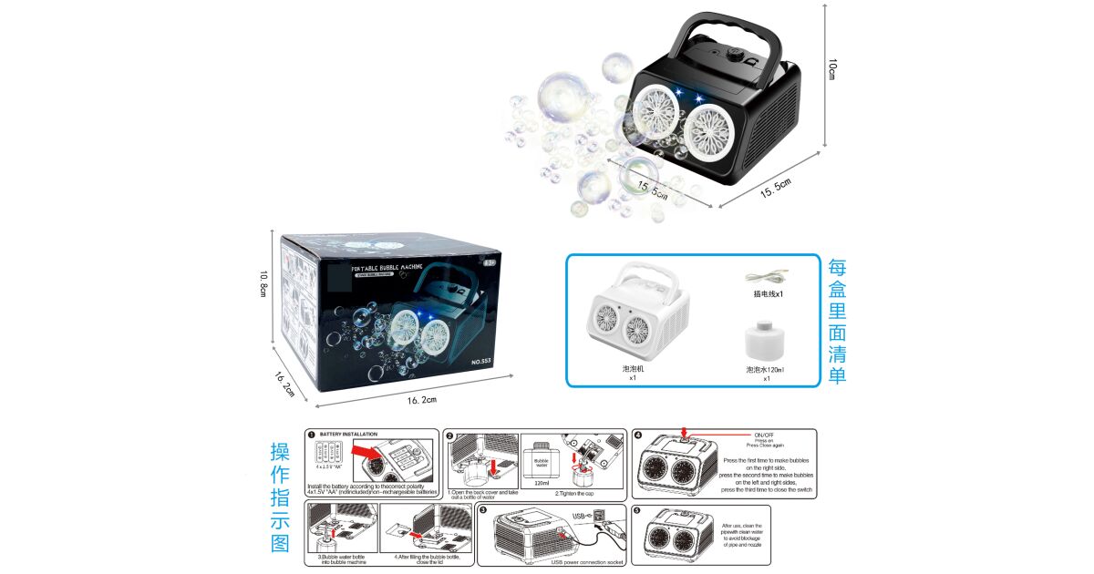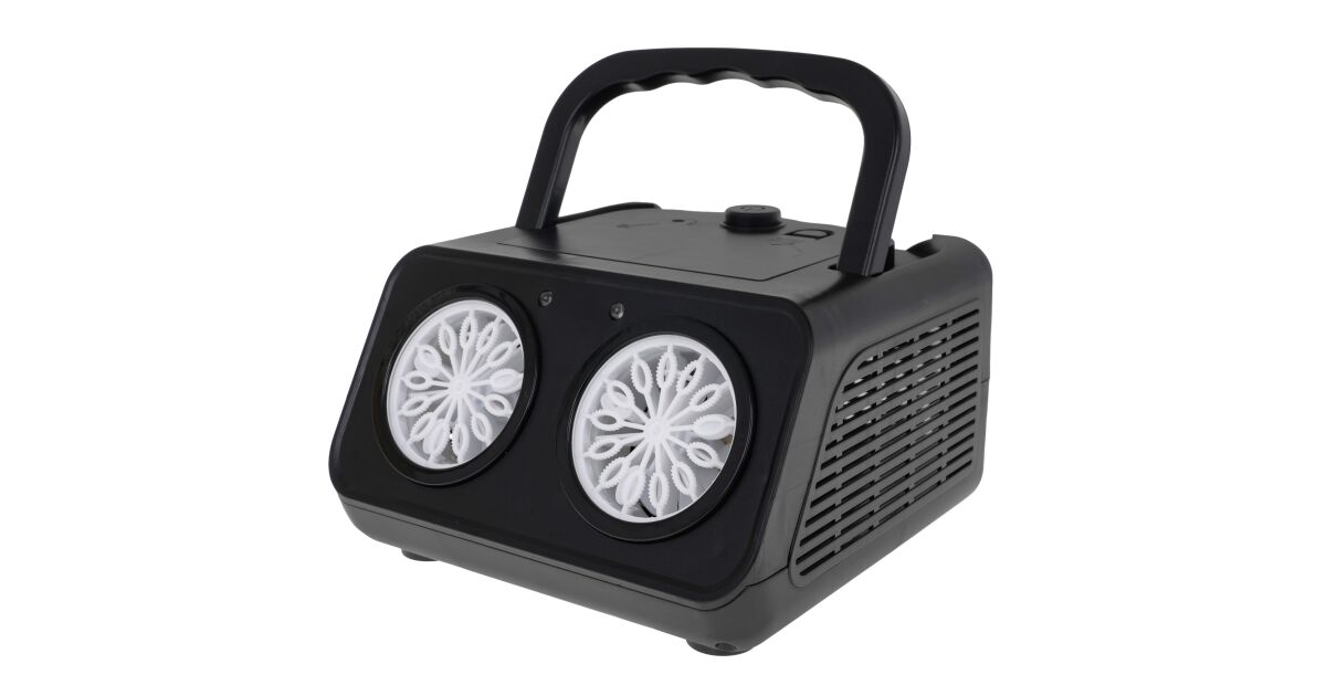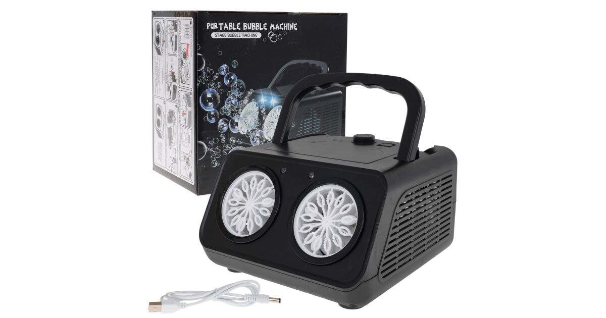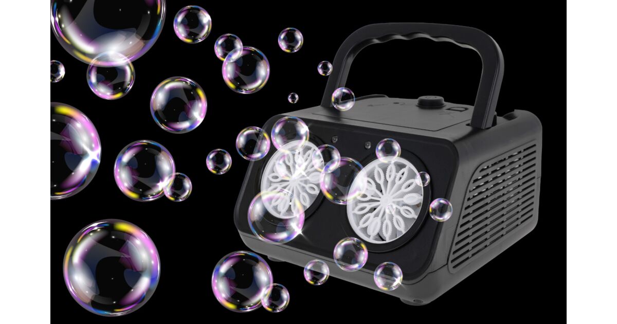 Seifenblasengenerator für Kinder ab 3 Jahren und Erwachsene, 2 Düsen, Ventilator, LED-Hintergrundbeleuchtung, Seifenblasenflüssigkeit Beschreibung