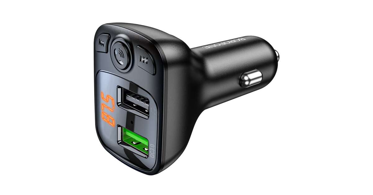 Genieße deine Lieblingsmusik während der Fahrt mit diesem kompakten und praktischen Bluetooth FM Transmitter! Mit dem BOROFONE BC41 kannst du deine Musik kabellos von deinem Smartphone oder einem anderen Bluetooth-Gerät über dein Autoradio streamen. Er verfügt außerdem über zwei USB-Anschlüsse, sodass du zwei Geräte gleichzeitig aufladen kannst.
