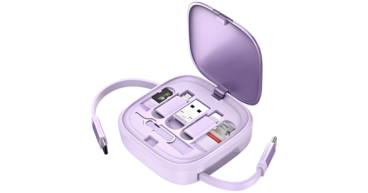USAMS 3-in-1-Dropdown-Kabel mit MicroUSB/USB-C/Lightning Box, 60 W, Lila/Violett, SJ650USB03 (US-SJ650)