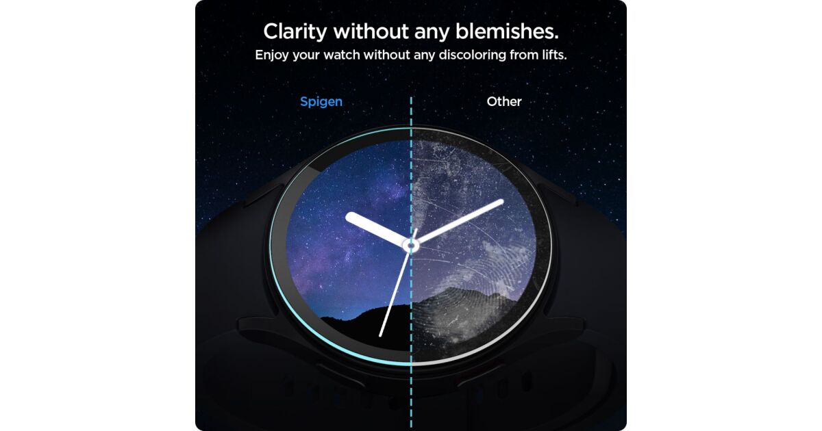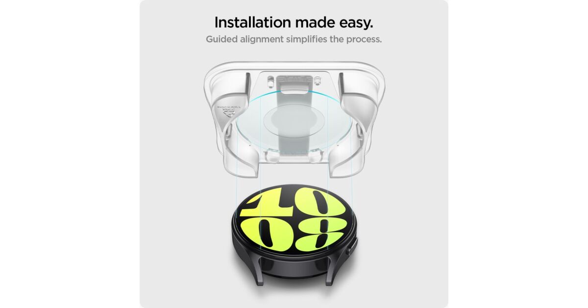 Das Set enthält zwei Spigen Glas.tR EZ Fit Schutzfolien aus gehärtetem Glas, die speziell für die Samsung Galaxy Watch7 mit 40mm entwickelt wurden. Diese Folien bieten einen vollständigen Schutz des Displays deiner Uhr und erhalten gleichzeitig das ursprüngliche Aussehen.