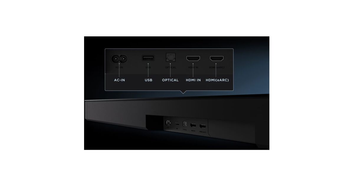 - Anschlüsse: HDMI, optischer digitaler Audioeingang, Wi-Fi, Bluetooth