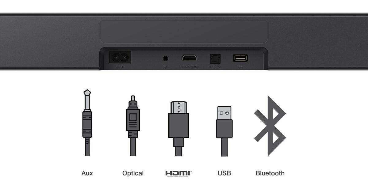 - Anschlüsse: 3,5 mm Klinke, AUX, digital optisch und HDMI. 🔌