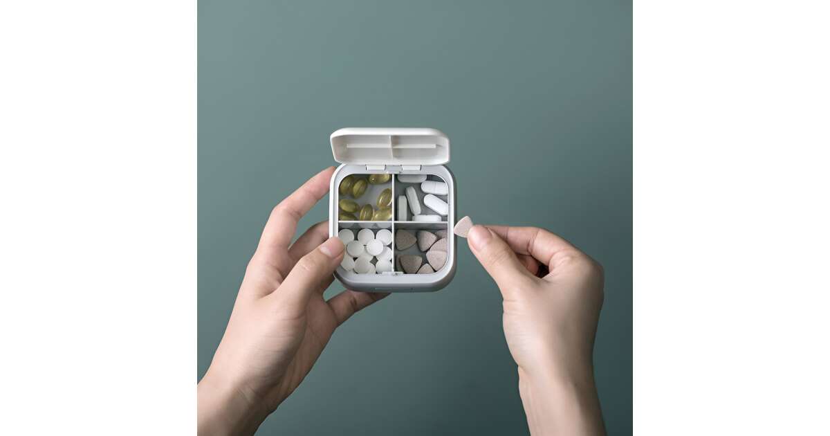 - 4 separate Fächer für verschiedene Arten von Medikamenten oder Nahrungsergänzungsmitteln.