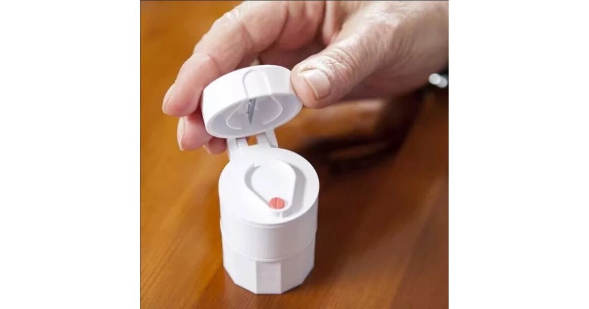 KeepHome Multifunktionale Pillendose 4 in 1: Schneiden, Zerkleinern, Aufbewahren und Trinken! 💊