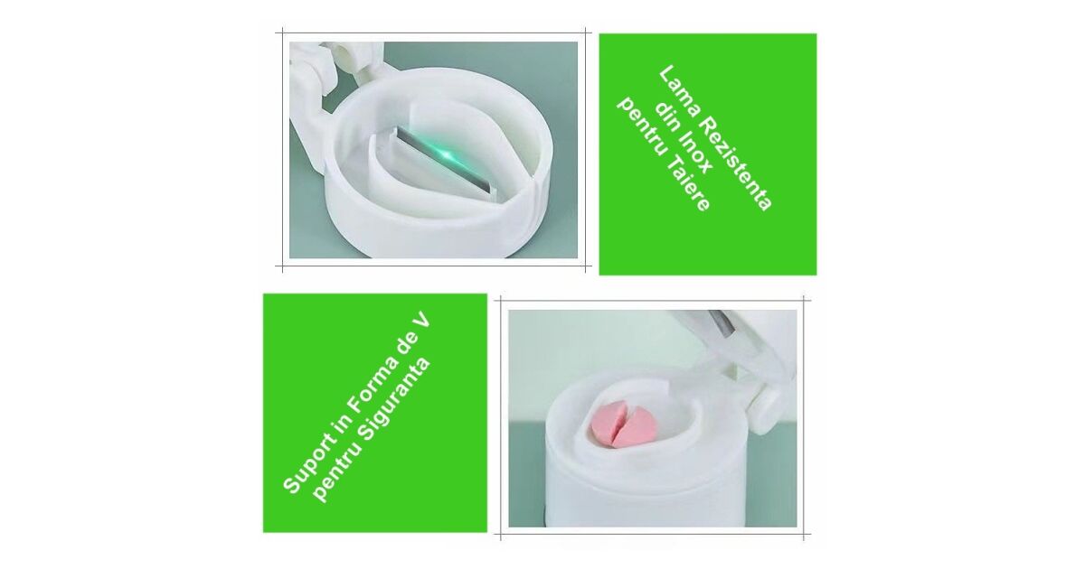 - Klinge aus Edelstahl: Sorgt für ein präzises und schnelles Schneiden der Pillen. 🔪