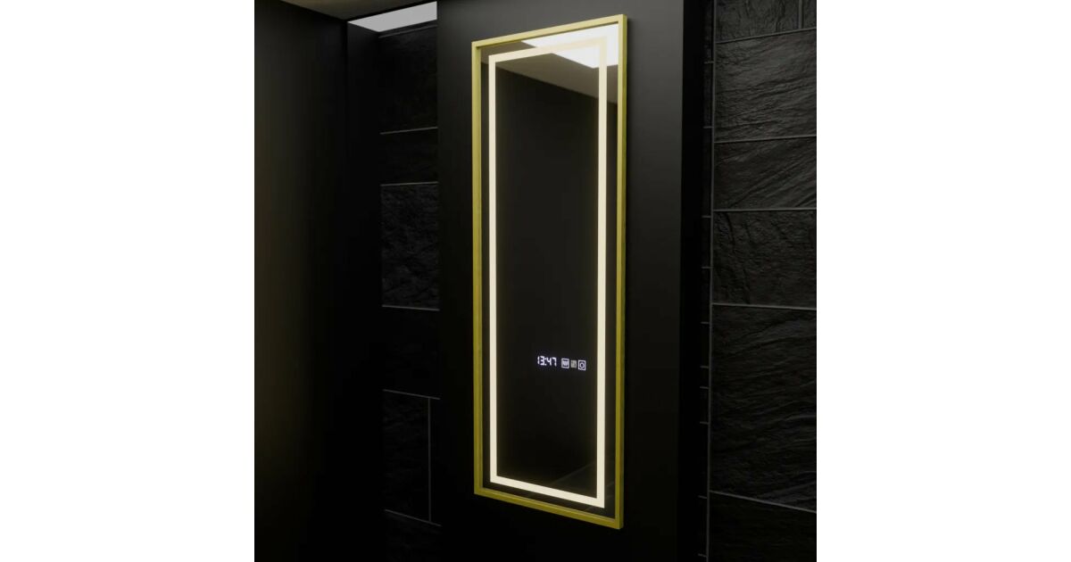 Rechteckiger LED-Spiegel, 45 x 140 cm, Elena Marcello Radarsensor, Antibeschlagsystem, Uhr und Thermometer, dimmbar, Dressing Couture
