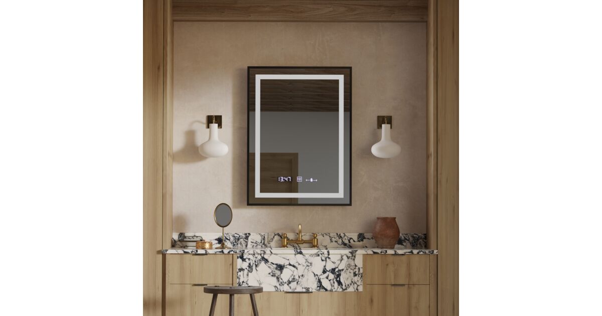 Der Verite Majeste Noir LED Spiegel ist die perfekte Ergänzung für jedes moderne Badezimmer. Der matte, schwarze Rahmen strahlt Eleganz aus, während die integrierten Funktionen für Komfort sorgen. Genießen Sie die Vorteile des Antibeschlagsystems, der Digitaluhr und des Thermometers!