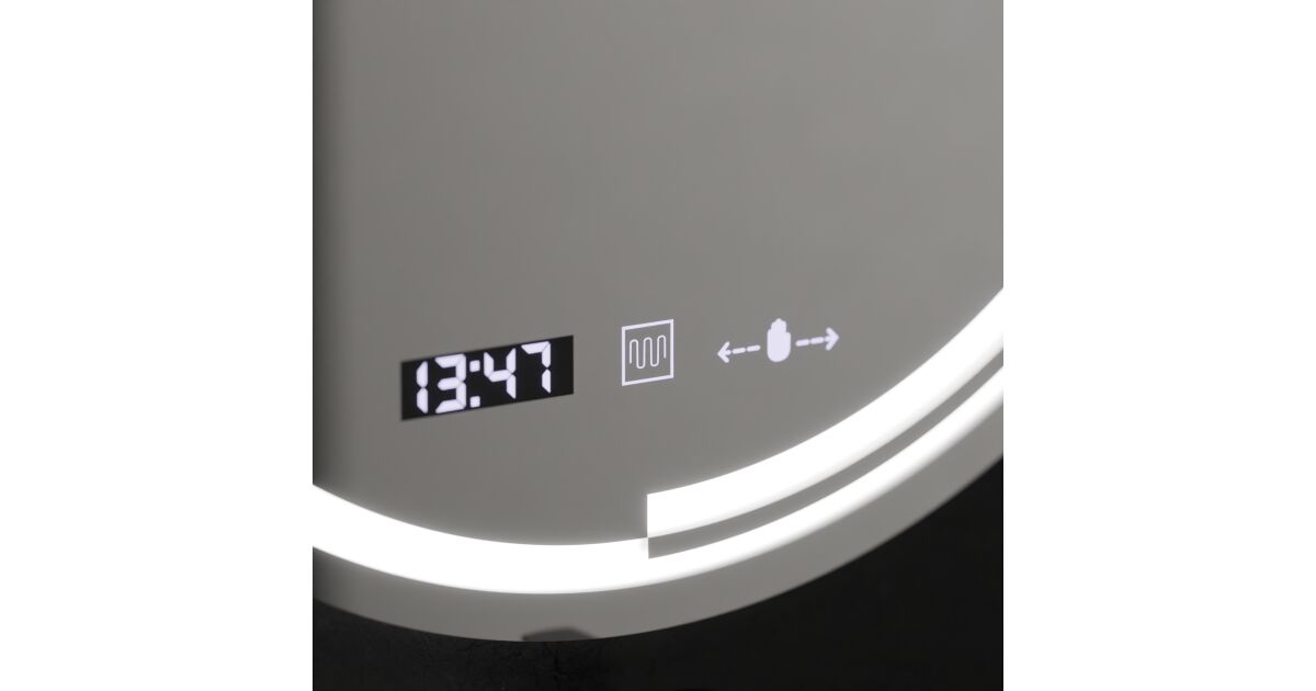 Runder LED-Spiegel, 60 cm, MotionGlow-Sensor Consuel Marcello, Antibeschlagsystem, Uhr und Thermometer, dimmbar Beschreibung