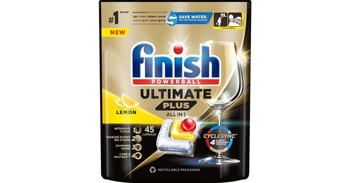 Die neuen Finish Ultimate Plus Spülmaschinentabs revolutionieren das Spülen! Dank der dreikammerigen CYCLESYNC™ Technologie werden die Inhaltsstoffe im richtigen Spülzyklus freigesetzt und garantieren außergewöhnliche Sauberkeit und Glanz. Die Spülmaschinentabs entfernen effektiv auch angebrannte Essensreste, ohne Vorspülen, wodurch Sie Zeit und Wasser sparen. Nach Erfahrungsberichten trocknen die Gläser fleckenfrei und glänzend.