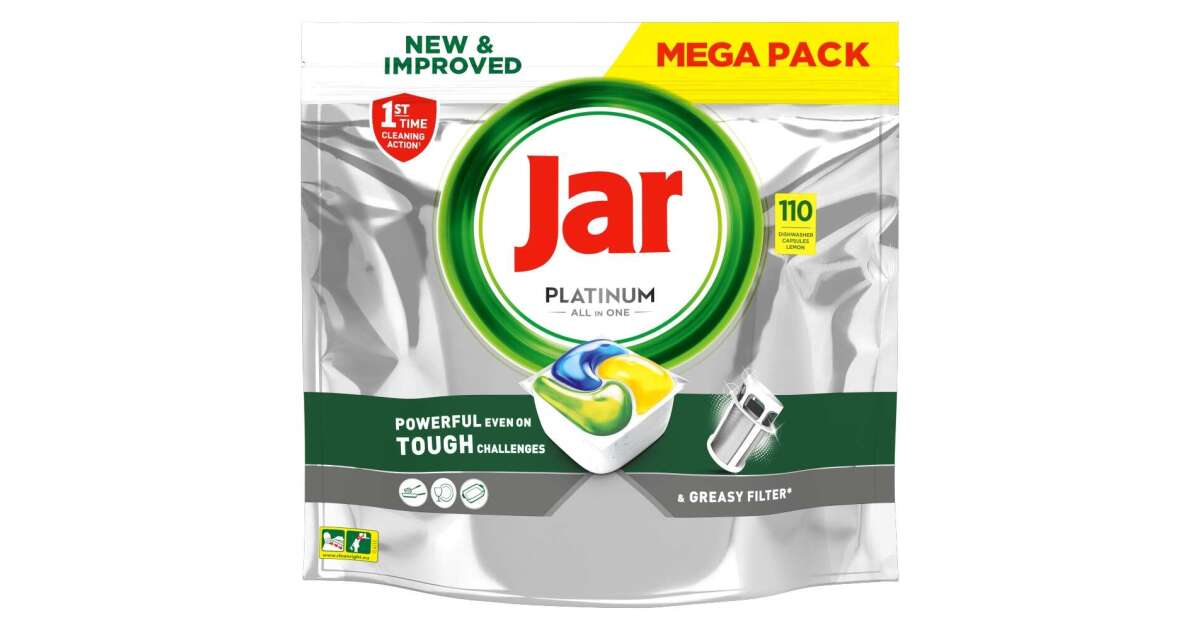 Genieße strahlend saubere Geschirr mit den Jar Platinum All-in-One Spülmaschinentabs! Diese hochwirksame Formel entfernt selbst hartnäckige Verschmutzungen, damit du mehr Zeit für die wichtigen Dinge hast. Die Tabs enthalten Salz und Klarspüler, schützen Glas und Silberbesteck. Der angenehme Zitronenduft sorgt für Frische in deiner Küche. 🍋