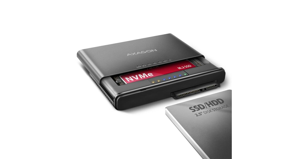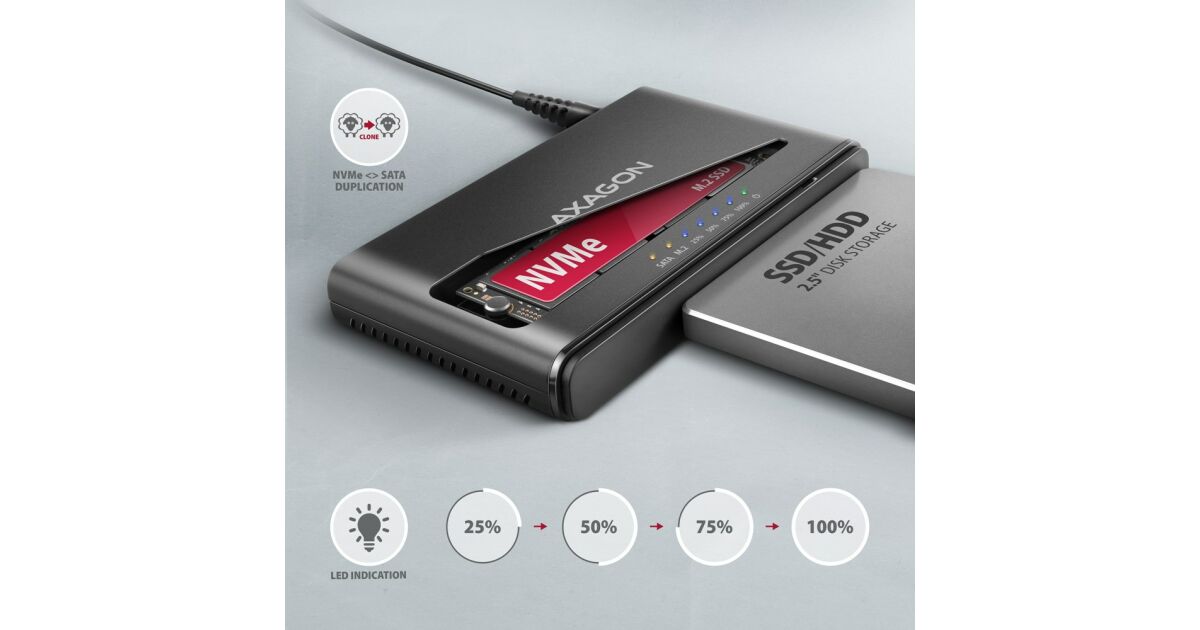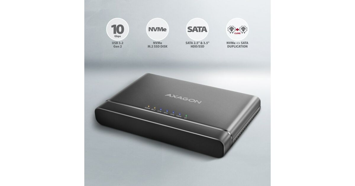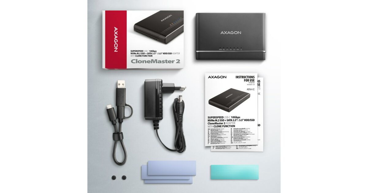 AXAGON ADSA-CC USB-C 10Gbps - NVMe M.2 SSD & SATA 2.5"/3.5" SSD/HDD CLONE MASTER 2