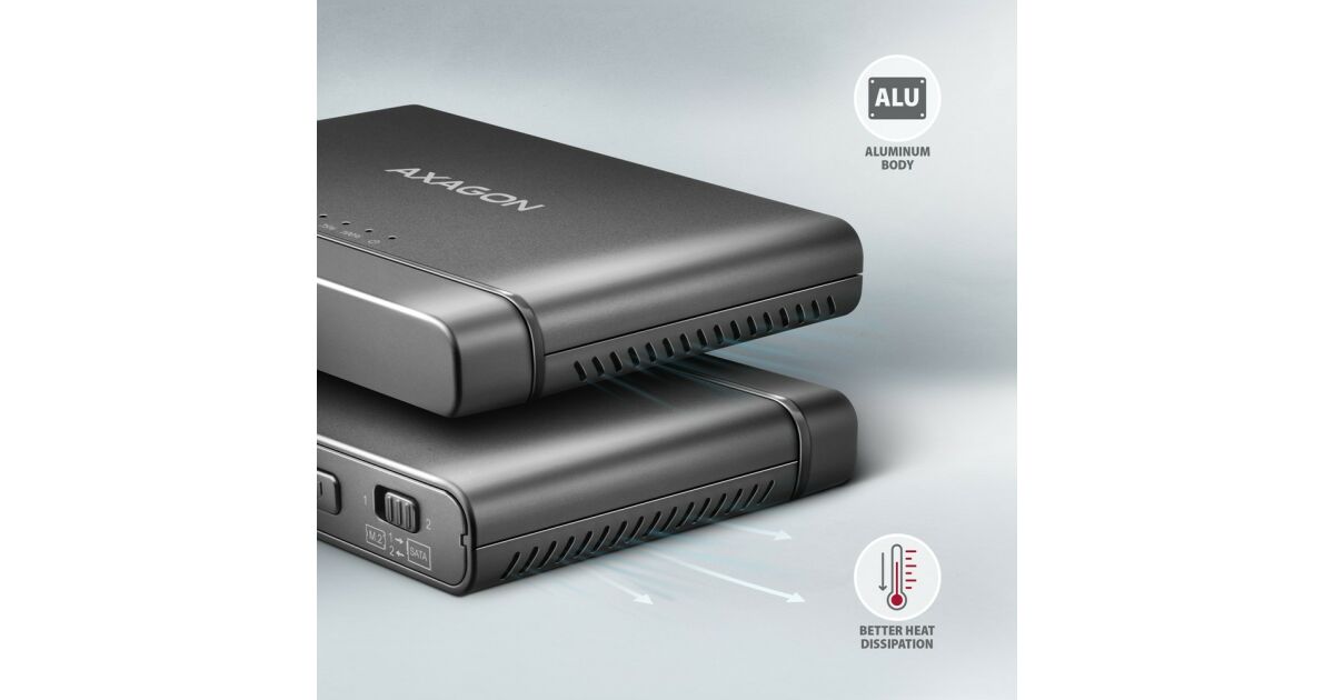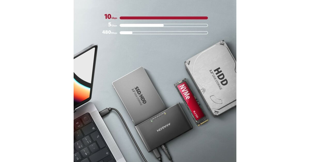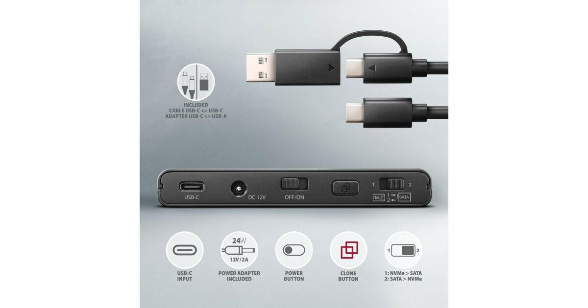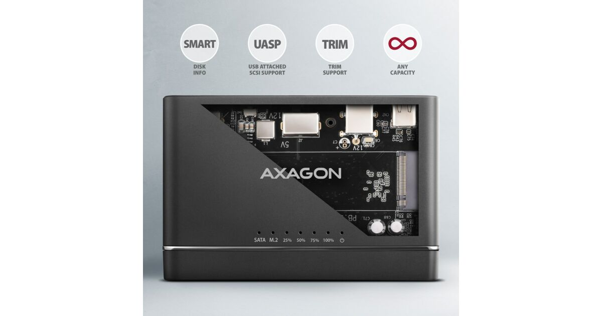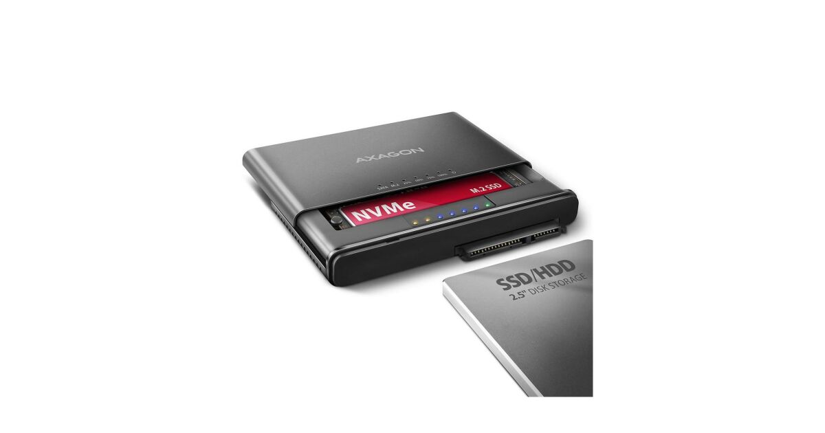AXAGON ADSA-CC USB-C 10Gbps - NVMe M.2 SSD & SATA 2.5"/3.5" SSD/HDD CLONE MASTER 2