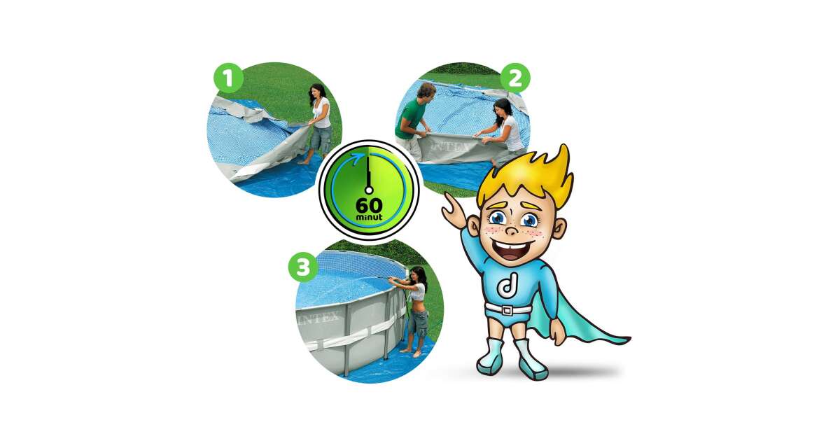 - Einfache Montage: Der Metallrahmen lässt sich leicht zusammenbauen, sodass du den Pool in nur 45 Minuten aufstellen kannst (mit 2 Personen).