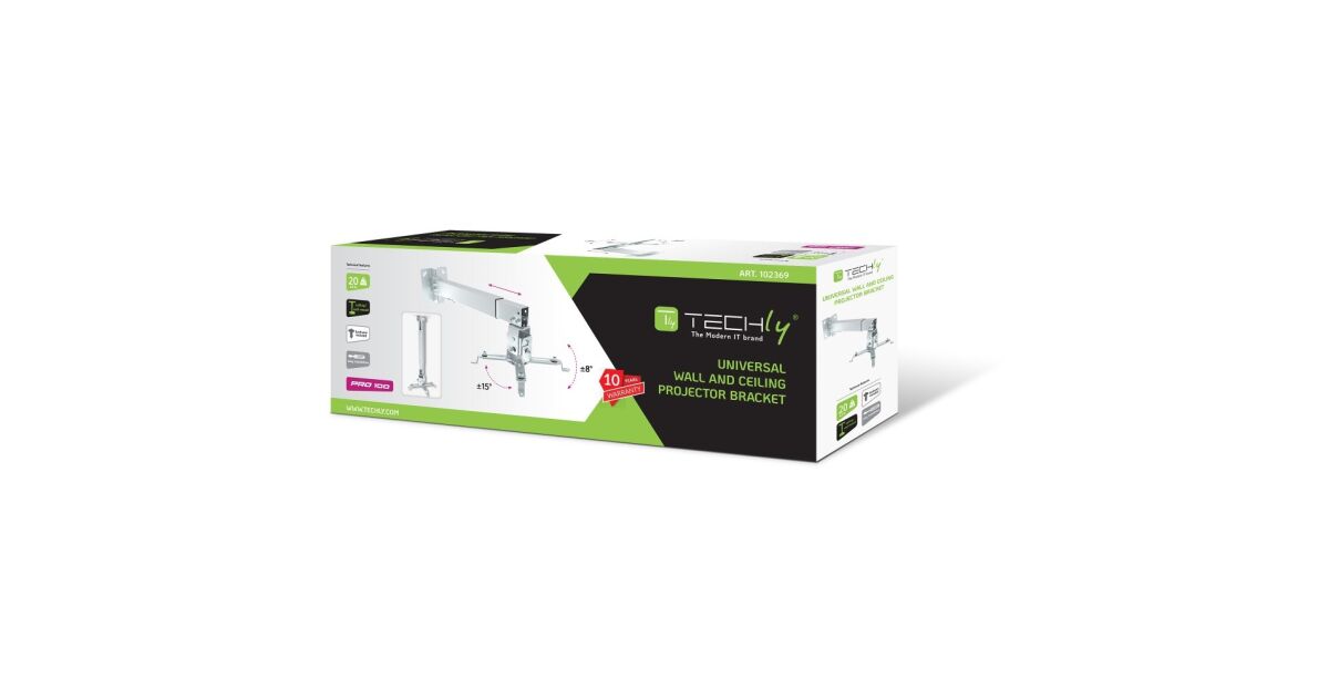 Techly ICA-PM 16. Befestigungstyp: Wand- / Decken, Höchstgewichtskapazität: 20 kg, Produktfarbe: Silber. Gewicht: 1,83 kg
