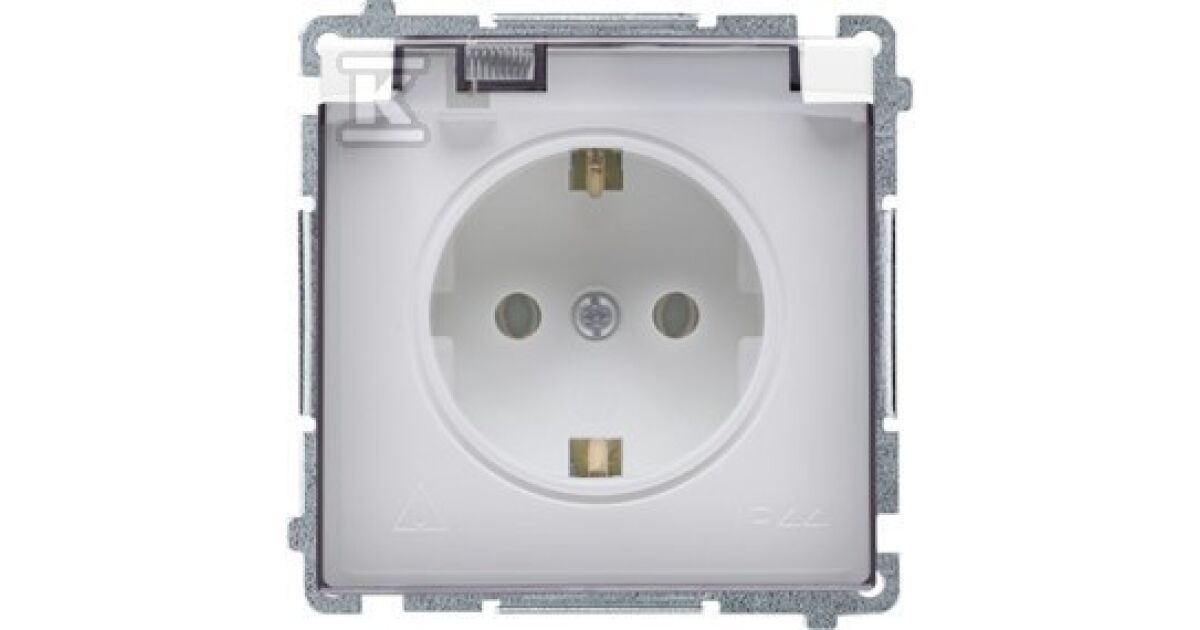 Simon Basic Schuko-Steckdose für IP44-Version (Modul) 16A, 250V~, Schraubklemmen weiß. Transparente Klappe BMGSZ1B.01/1