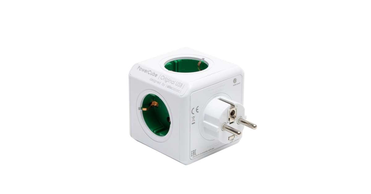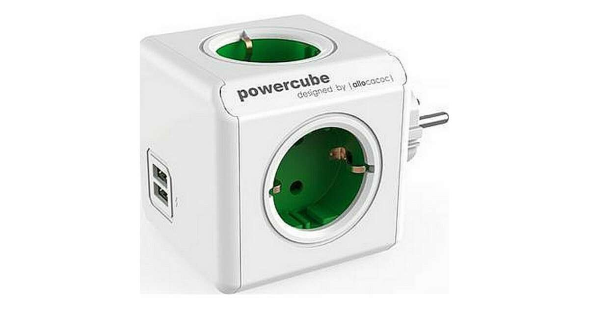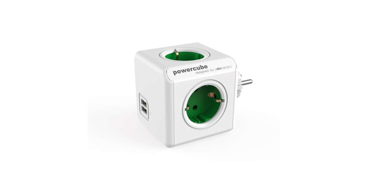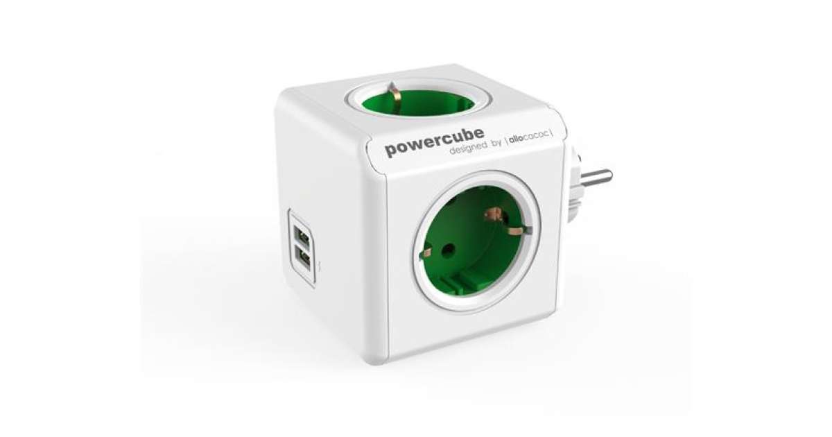 -ALLOCACOC Verteiler, 4 Steckdosen, 2 USB-Anschlüsse, ALLOCACOC "PowerCube Original USB DE", weiß-grün Beschreibung