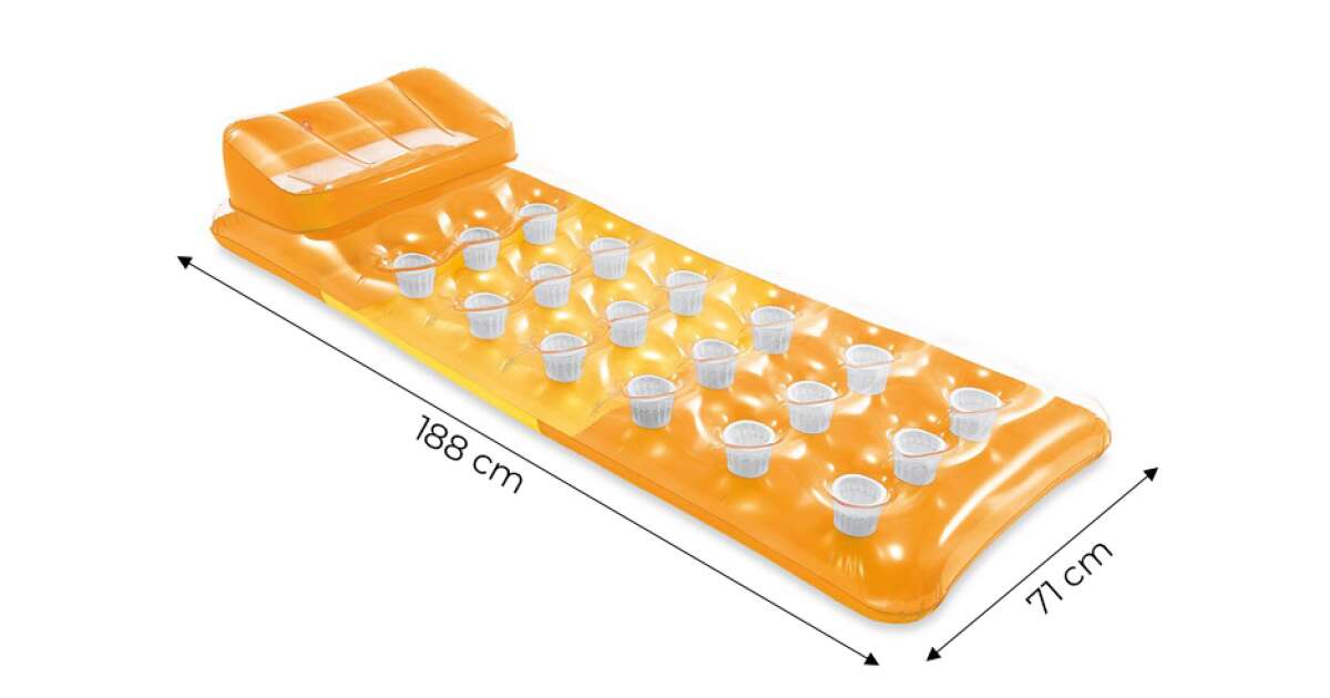 Genieß die Sommertage mit diesem bequemen aufblasbaren Liegeinsel! Perfekt für den Pool, den See oder den Strand. Dank der integrierten Getränkehalter hast du deine Drinks immer griffbereit. Die erhöhte Kopfstütze sorgt für extra Komfort.