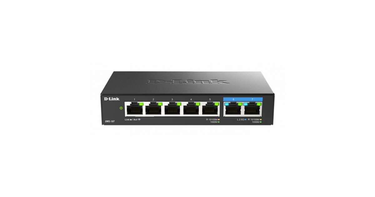 D-link switch 5x1000mbps + 2x2.5gbps multi-gigabit metallgehäuse desktop, dms-107/e DMS-107/E Beschreibung