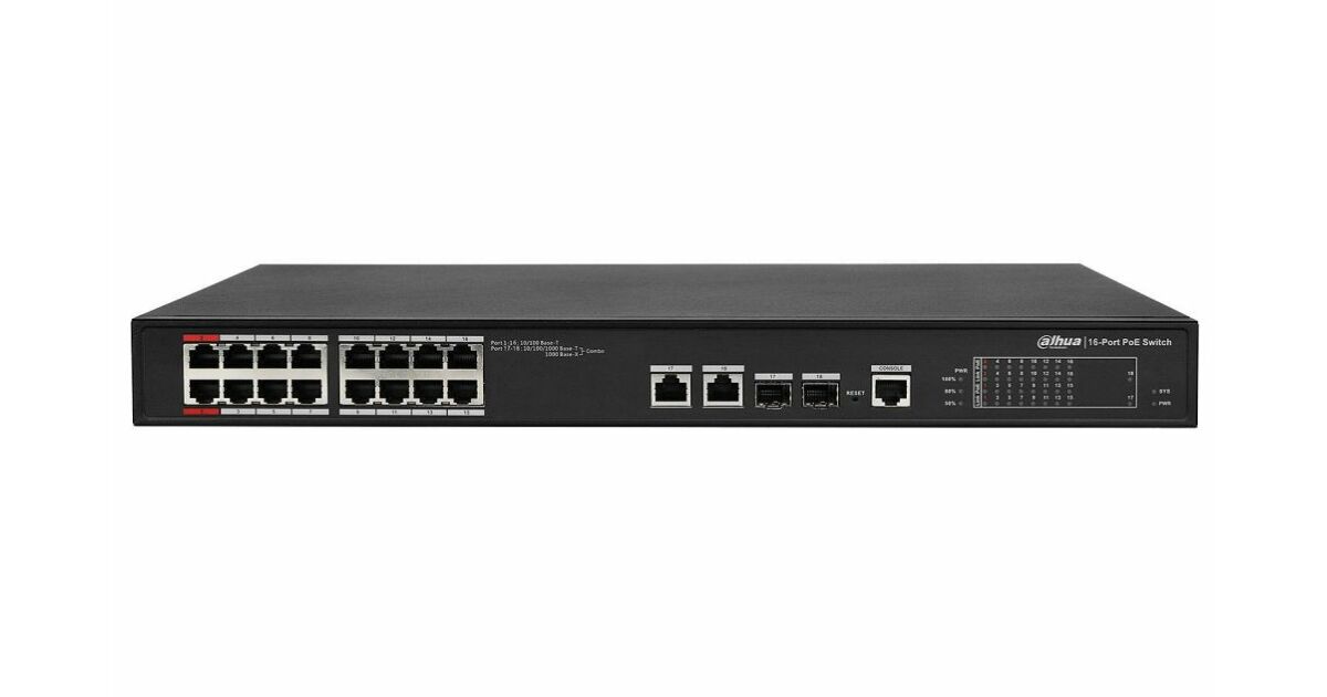Der Dahua PFS4218-16ET-240 PoE Switch ist eine zuverlässige, effiziente und vielseitige Lösung für den Aufbau Ihrer Netzwerkinfrastruktur.