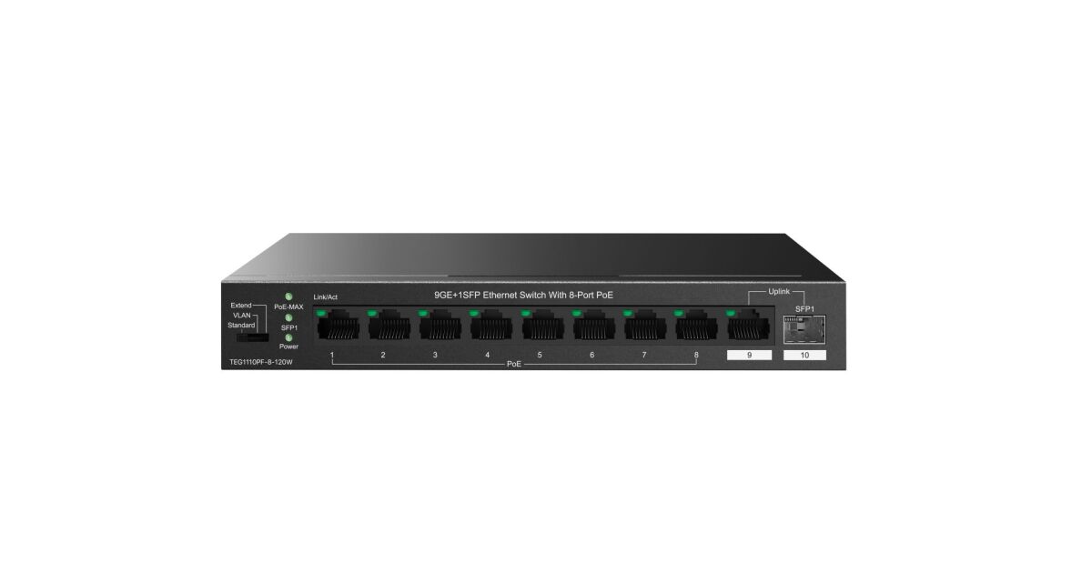 Tenda TEG1110PF-8-120W Netzwerk Switch Unmanaged Gigabit Ethernet (10/100/1000) Ethernet Power over Ethernet (PoE) Unterstützung Schwarz Beschreibung