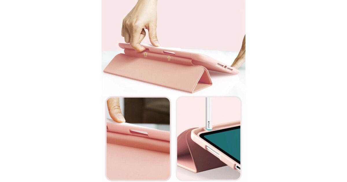 - Dank der Verwendung einer gefalteten Abdeckung auf der Vorderseite der Abdeckung erhalten wir ausreichender Schutz für das Display und dank der Technologie zum Aufwecken und Schlafen des Geräts können wir eine etwas längere Akkulaufzeit gewährleisten.