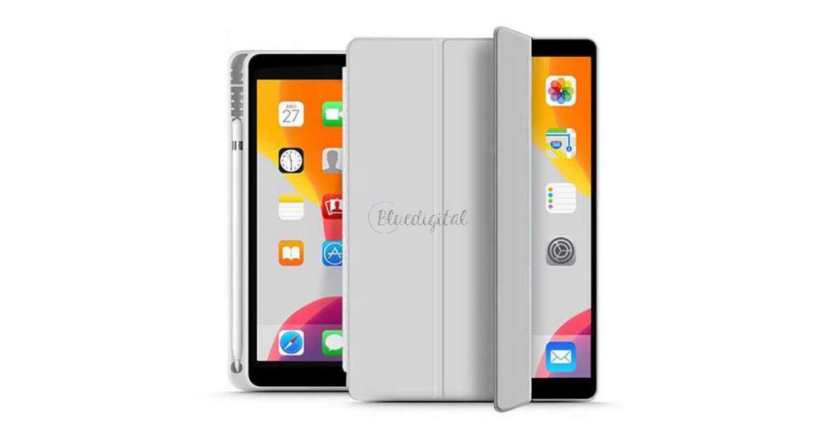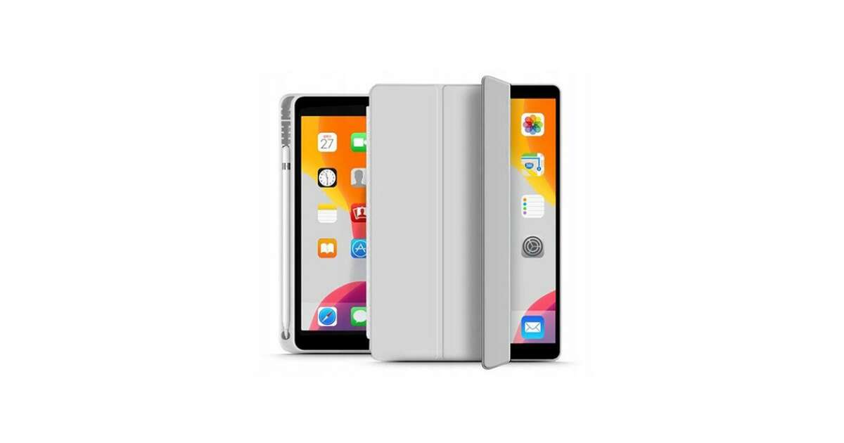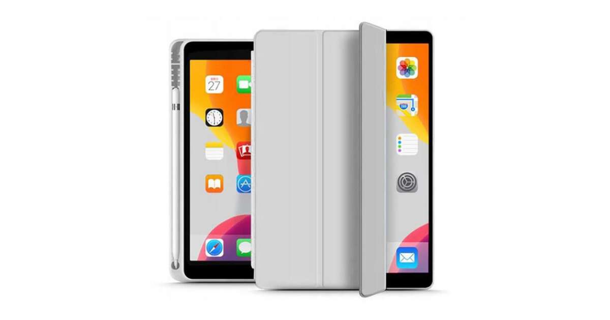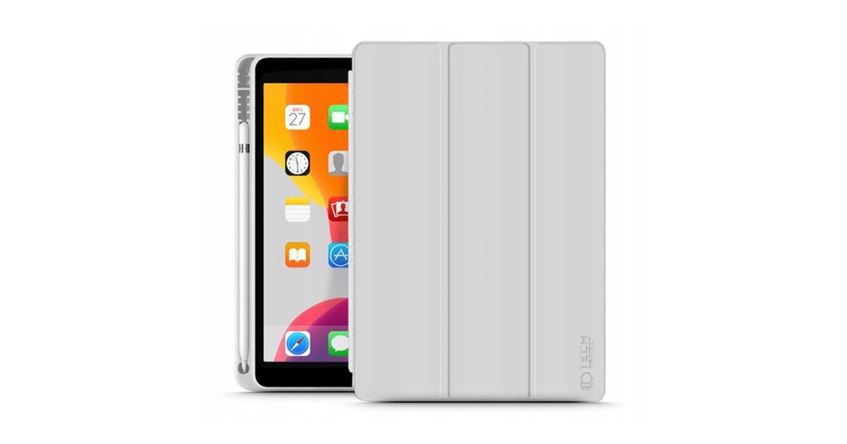 Apple iPad 10.2 (2019/2020/2021) Tablet-Hülle (Smart Case) mit An-/Aus-Funktion, Apple Pencil Halterung – Tech-Protect – Grau (ECO-Verpackung)