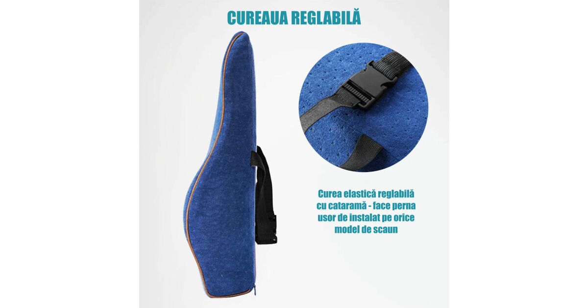 Komplettes Lendenkissen für Bürostuhl oder Auto, Linomag®, Memory Foam, Blau, 45 x 38 x 12cm Beschreibung