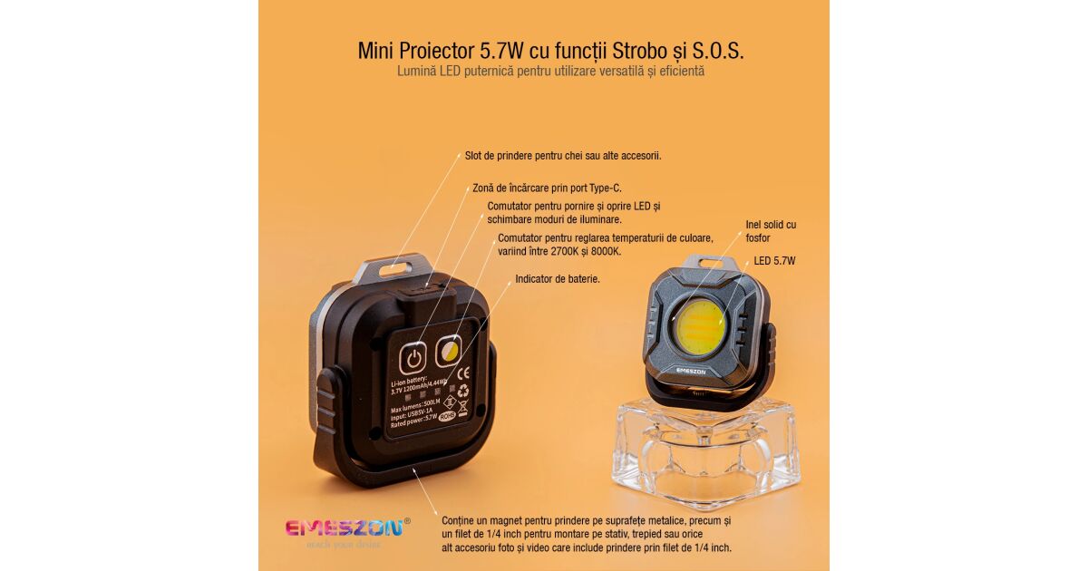Mini-Projektor-LED-Taschenlampe, dreifarbig + rot, 5,7 W, EMESZON®, Strobe, SOS, Magnethalterung, Stativ, 1/4 Zoll Gewinde, blau-schwarz Beschreibung