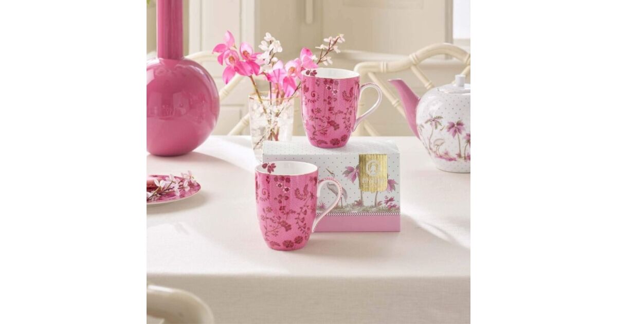 Mit dem Pip Studio Jolie Flowers Pink Porzellanbecher Set wird jeder Schluck zu einem kleinen Luxus!
