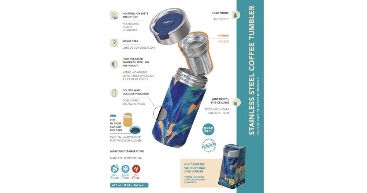 Quokka Boost Coffee Tumbler — Thermobecher aus Edelstahl mit Teesieb, 400 ml (Greenstone) Meinungen