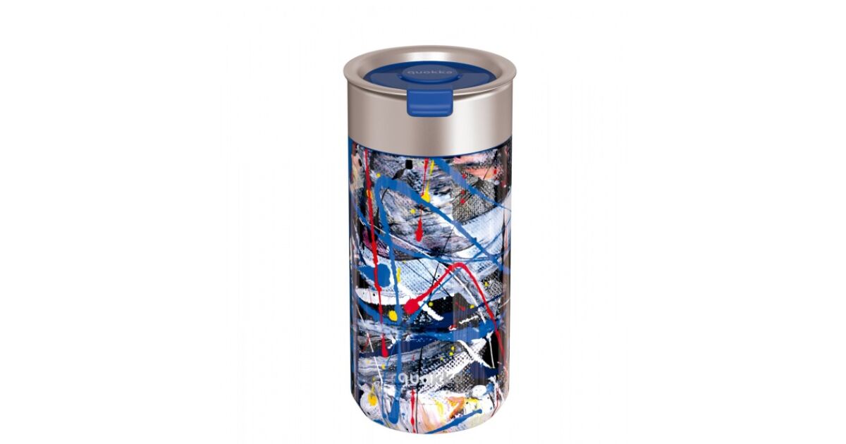 Quokka Boost Kaffeebecher, Thermobecher aus Edelstahl mit Teesieb, 400 ml (abstrakt)