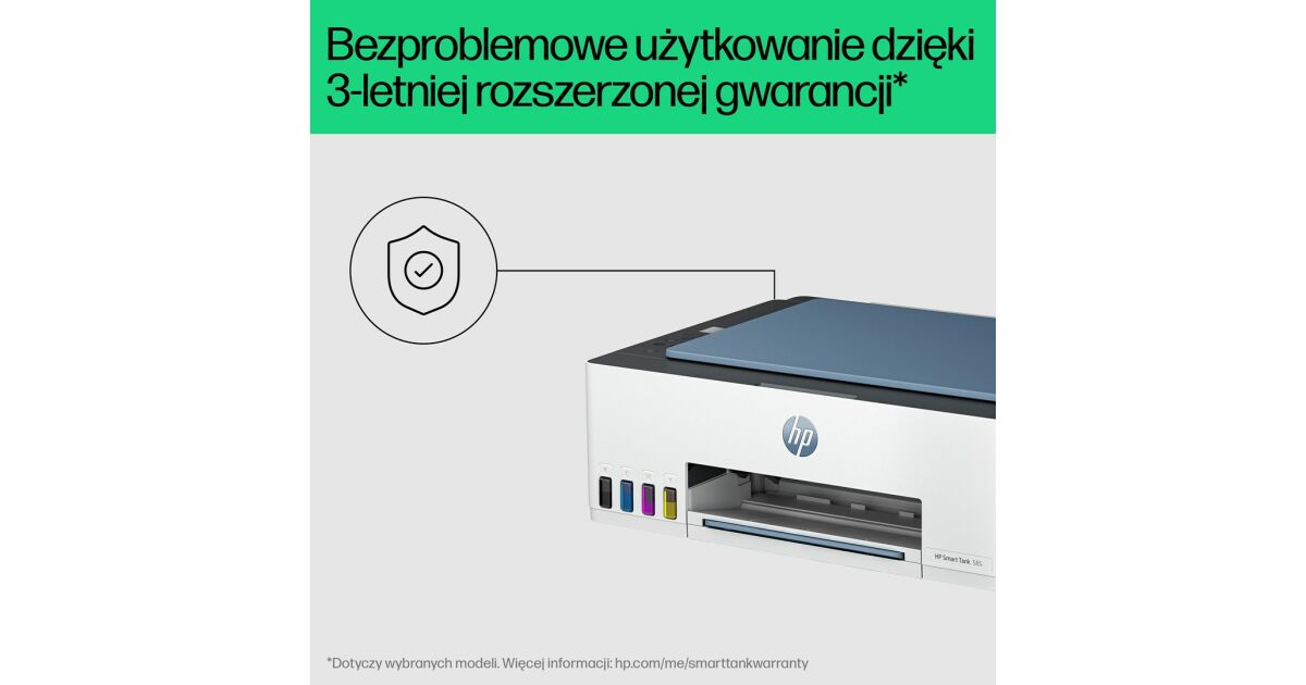 HP Tintenstrahl-MFP ny/m/s Smart Tank 585 Tintenbehälter-Multifunktionsdrucker, USB/WLAN A4 12 S./Min.(ISO), blau 1F3Y4A#671 Beschreibung