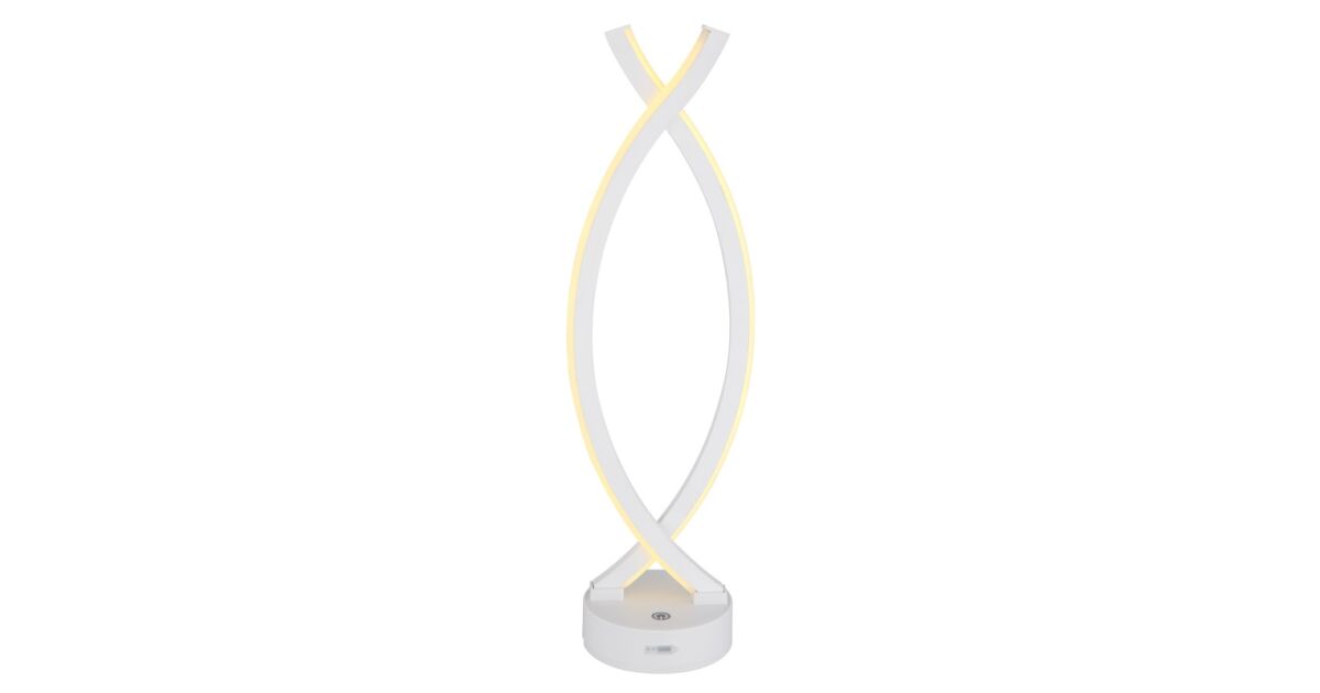Diese moderne LED-Tischleuchte ist eine stilvolle Ergänzung für Ihr Zuhause oder Büro. Mit ihrer feinen, weißen, matten Oberfläche und dem eleganten, doppelten Bogendesign passt sie gut in jeden Raum. Dank des eingebauten, wiederaufladbaren Akkus kann sie überall kabellos verwendet werden. Die Helligkeit ist per Berührung einstellbar, sodass Sie immer die perfekte Beleuchtung haben.