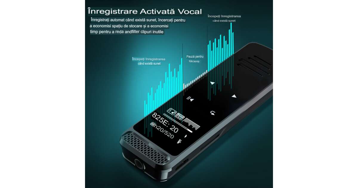Sprachaktivierung: Intelligente Funktion der Sprachaktivierungă sicheră klare und präzise Aufnahmen, wodurch unnötige Pausen vermieden werden.