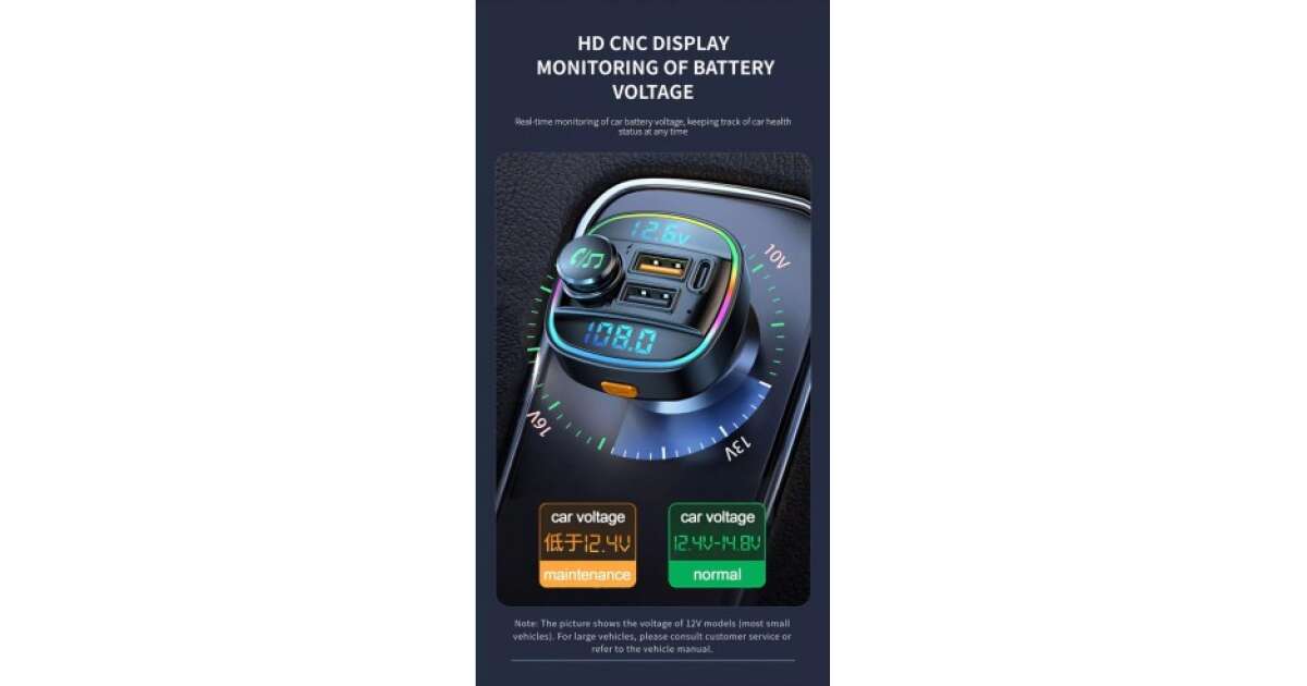 FM-Modulator 12-24V Bluetooth 5.0 mit 20W Super Charge PD20W Autoladefunktion und USB C - C22 Anschluss Beschreibung