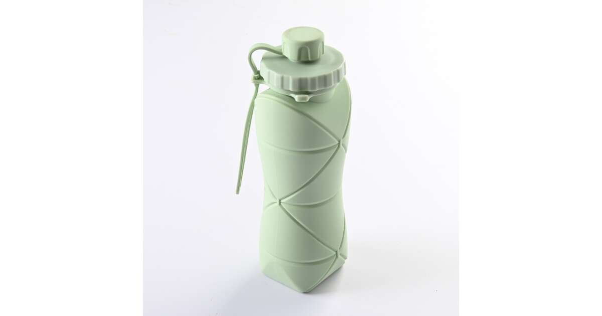 Flippy faltbare Wasserflasche, aus Silikon, wiederverwendbar, beständig gegen hohe Temperaturen, leicht zu verstauen und zu tragen, 22 x 7,8 cm, 600 ml, grün
