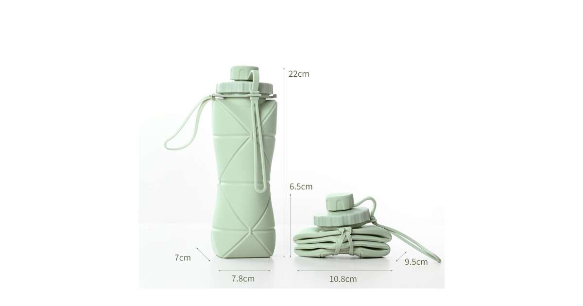 Flippy faltbare Wasserflasche, aus Silikon, wiederverwendbar, beständig gegen hohe Temperaturen, leicht zu verstauen und zu tragen, 22 x 7,8 cm, 600 ml, grün Beschreibung