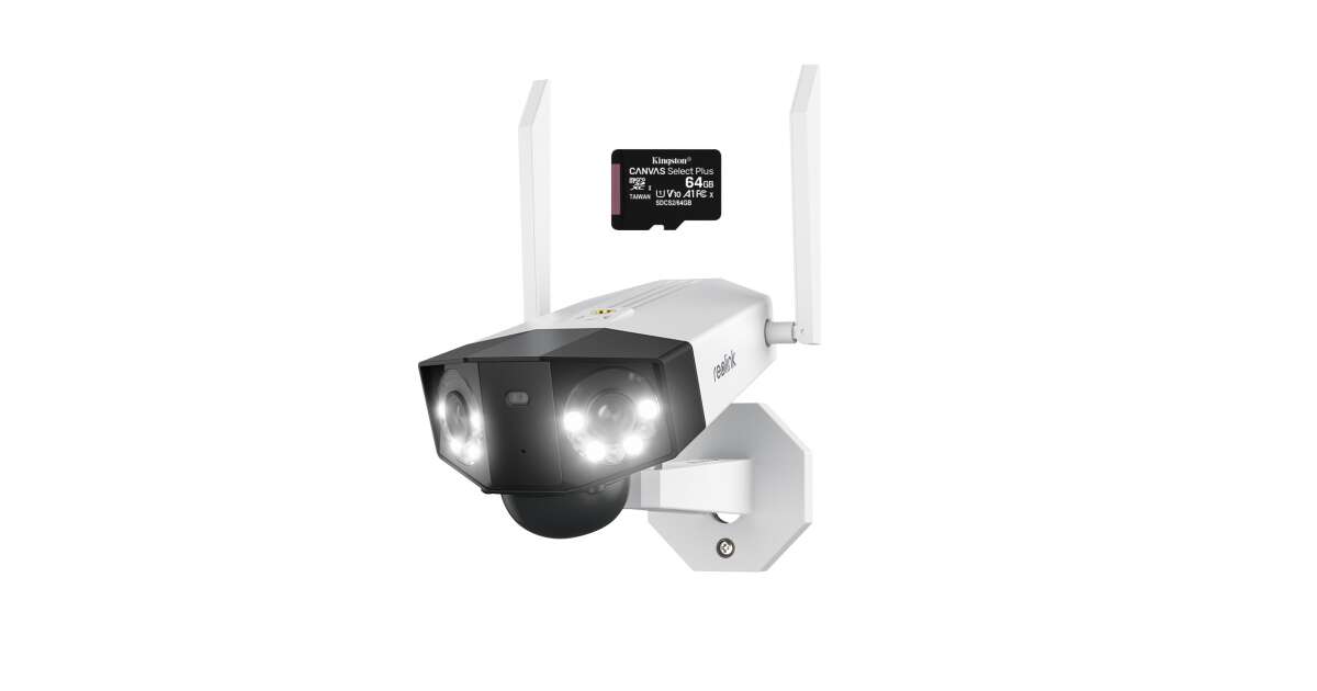 Reolink Duo 2 8MP WiFi Sicherheitskamera mit 180° Sichtfeld und 64GB Kingston microSD Karte