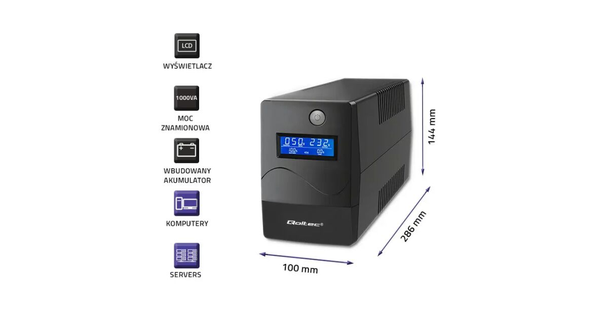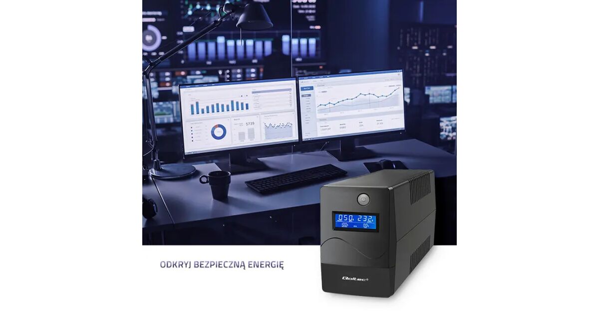 Qoltec Monolith USV-Adapter | 1000 VA | 600 W | LCD | USB | RJ45