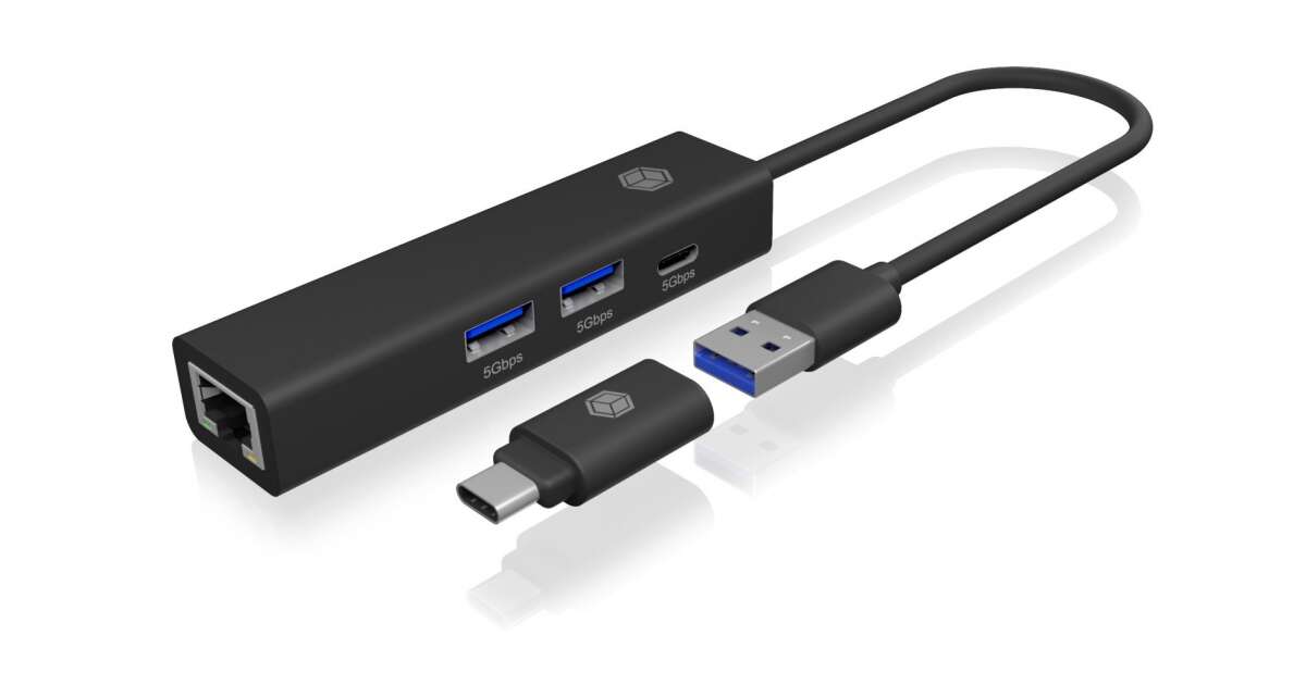 RaidSonic IcyBox IB-HUB1439-LAN USB-C Hub: 4 Anschlüsse, Ethernet und mehr