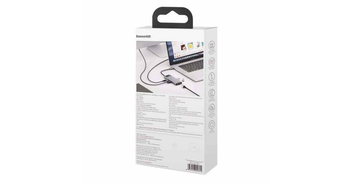Hub 6in1 Baseus Metal Gleam Series, USB-C zu 3x USB 3.0 + HDMI + USB-C PD + Ethernet RJ45
