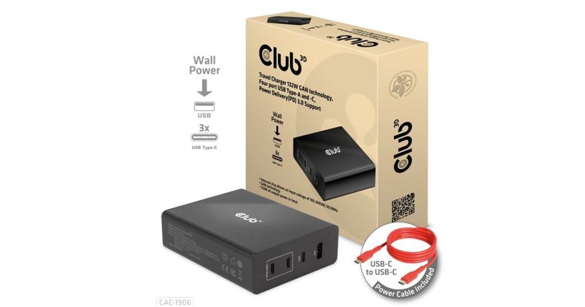Club 3D 132W USB-C Ladegerät: Lade bis zu 4 Geräte gleichzeitig auf! ⚡