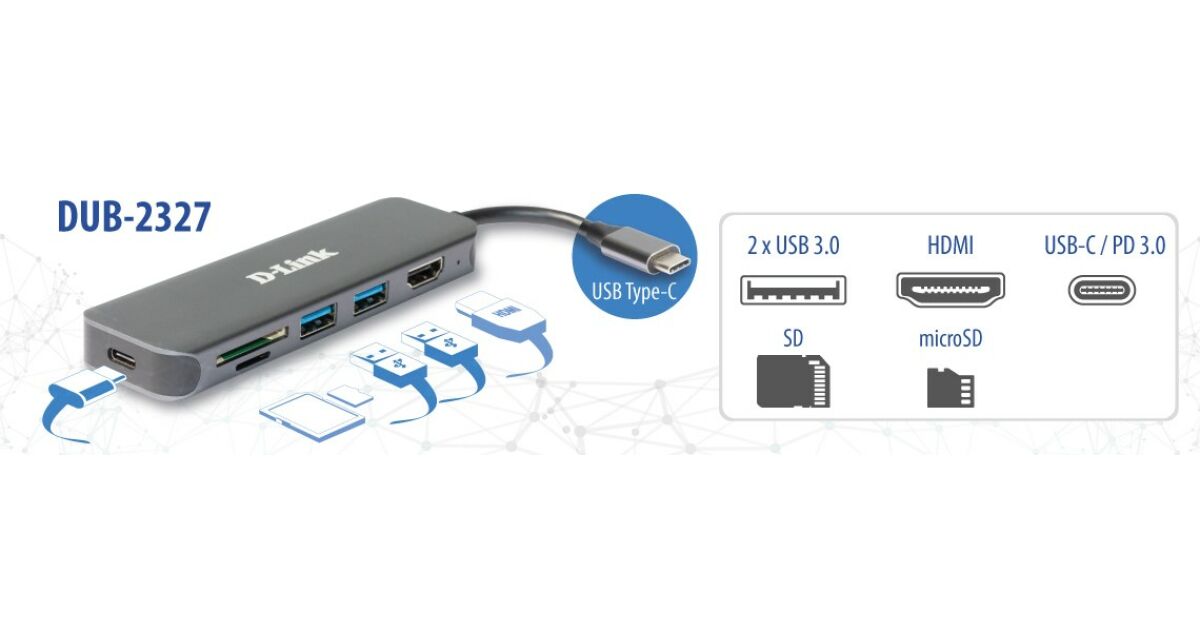D-Link DUB-2327 6-in-1 USB-C Hub mit HDMI/USB-PD/SD-Reader retail