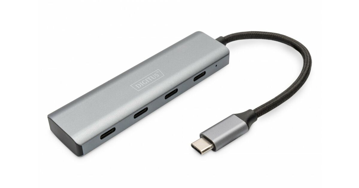 DIGITUS USB-C-Hub 4-Port 3.1->4xC3.1 integr. Kabel silber