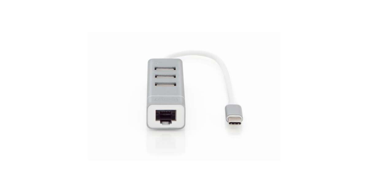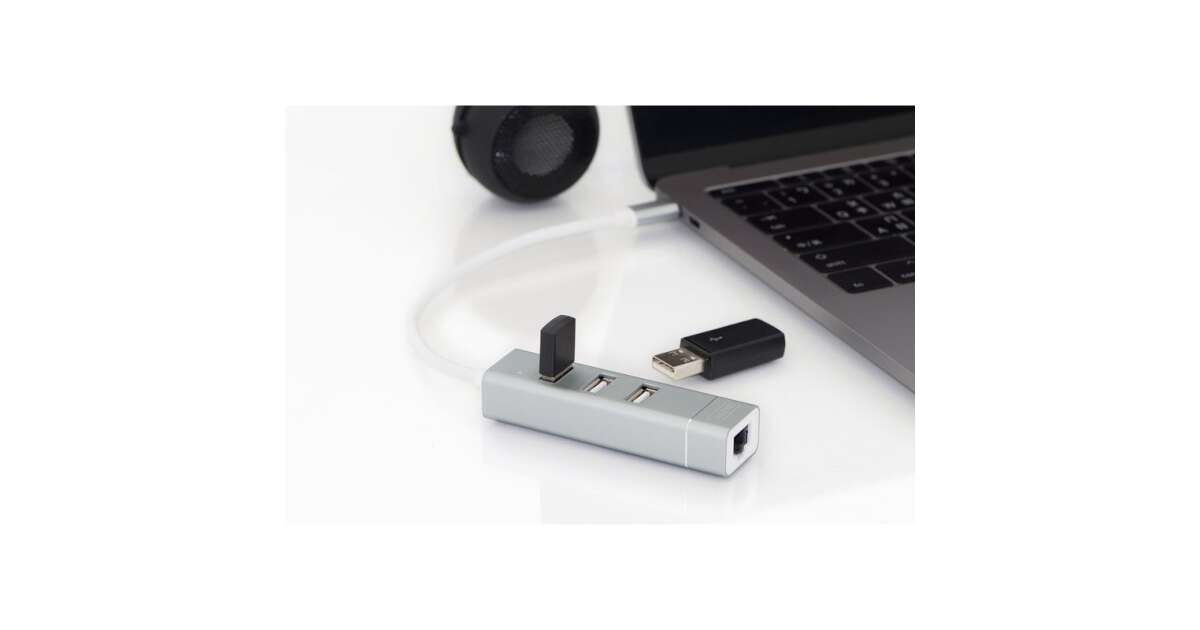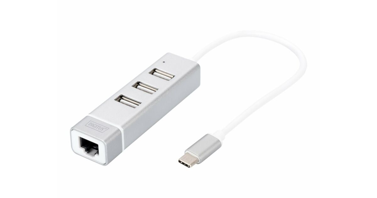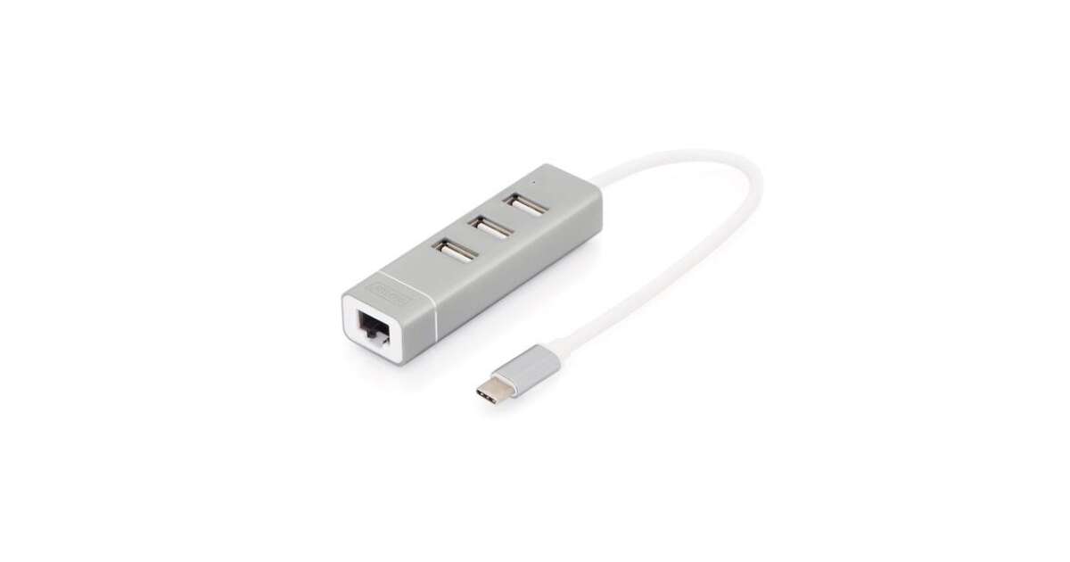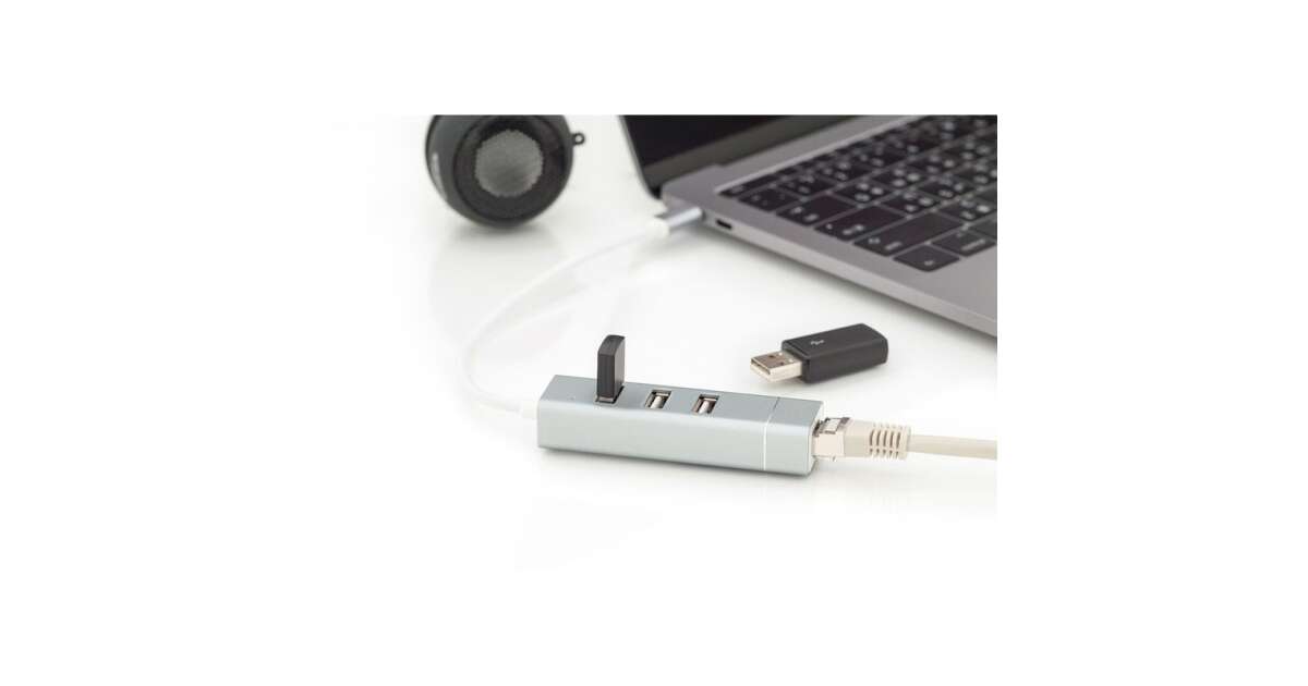 DIGITUS USB Typ-C Ethernet Adapter + 3 Port USB HUB