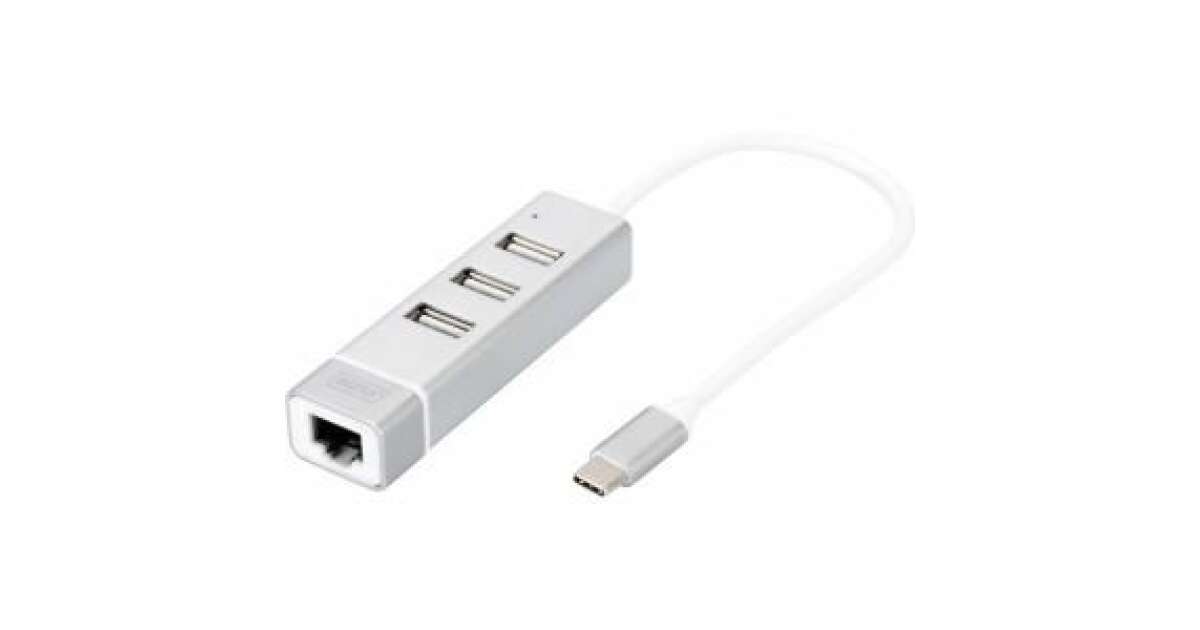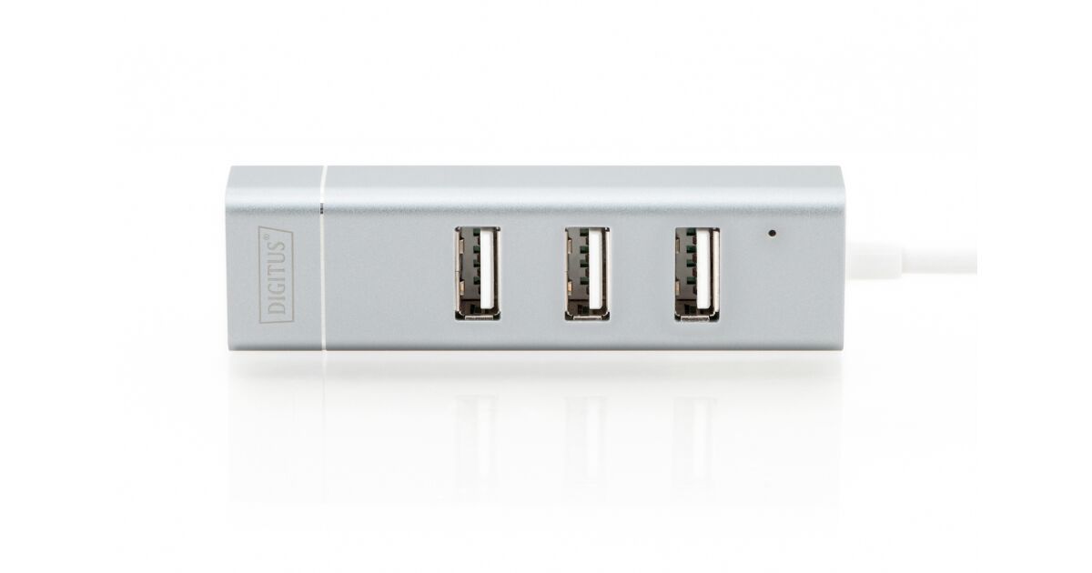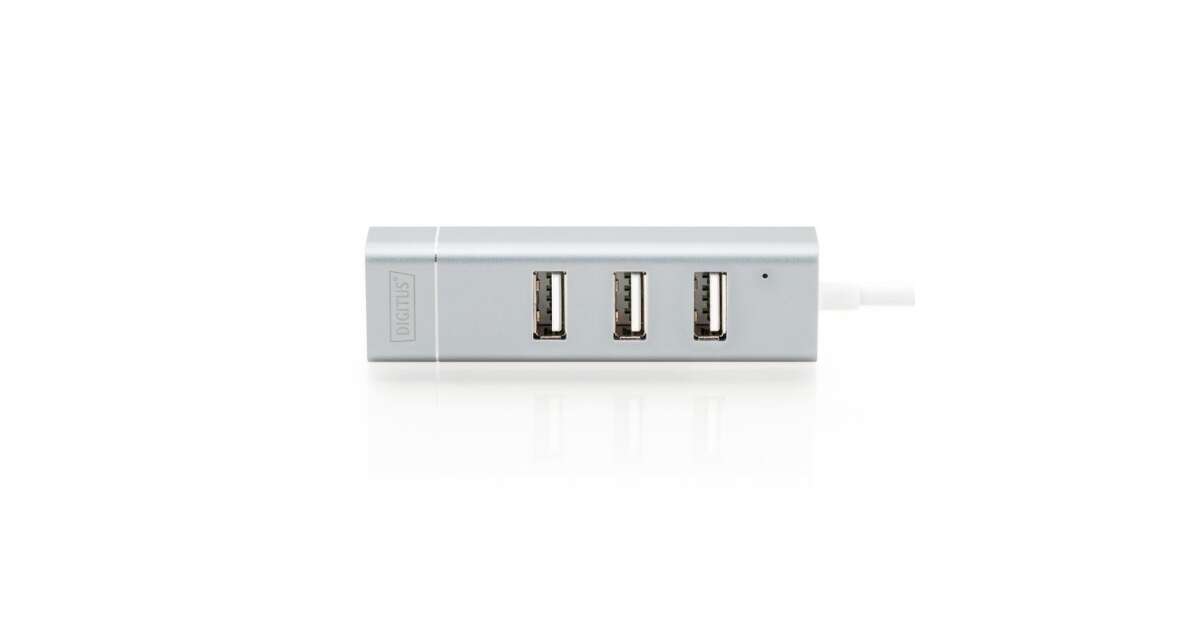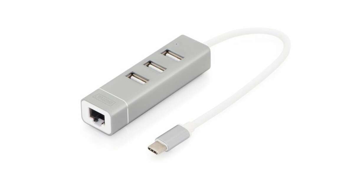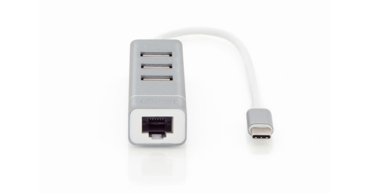 DIGITUS USB Typ-C Ethernet Adapter + 3 Port USB HUB
